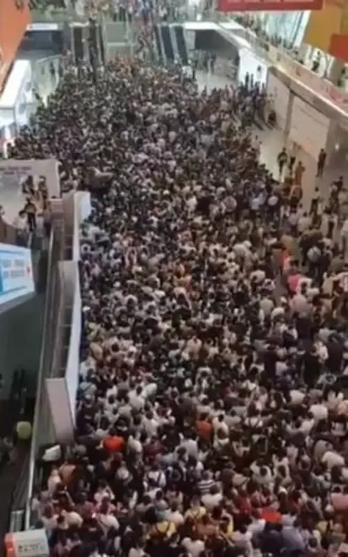 La impactantes imágenes muestran a miles y miles de personas, prácticamente unas encimas de las otras, haciendo lo posibles para escapar por las escaleras mecánicas o salidas de la suerte de shopping.